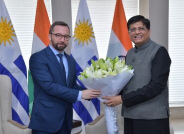 Meeting of the Vice Minister of Foreign Affairs of Uruguay, Dr. Nicolas Albertoni and the Ambassador, Alberto A. Guani with Shri Piyush Goyal, Minister of Commerce and Industry.