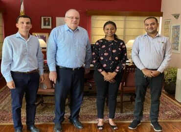 Ambassador’s meeting with Mr. Raj Kumar Sharma, Founder President of Indo Latin American Chamber of Commerce and Mr. Manoj Sinha from the company T.M. International at the Embassy.